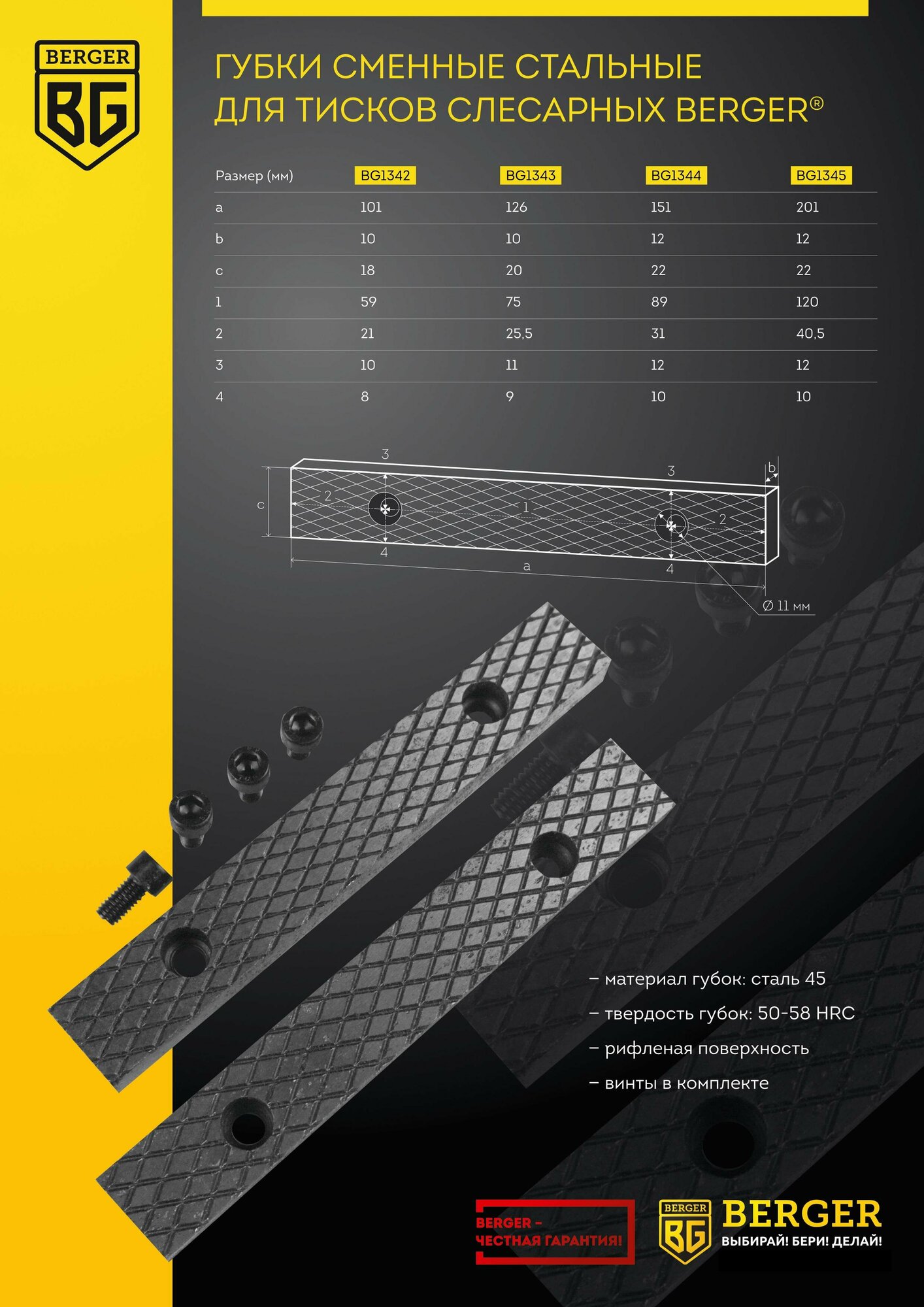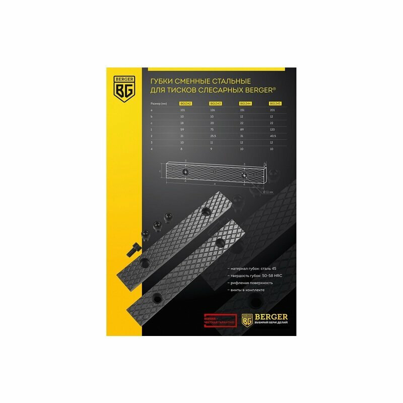 Губки сменные Berger стальные для слесарных тисков 200 мм (BG1345) информация: