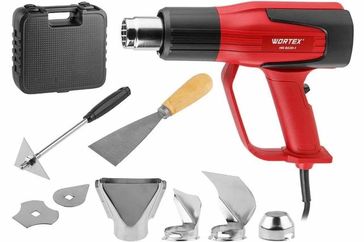 Wortex Термовоздуходувка WORTEX HG 6020 в кор. + набор сопл (2000 Вт, 2 скор., 450-600 °С, ступенч. рег.,250-500 л/мин) (HG602000011)