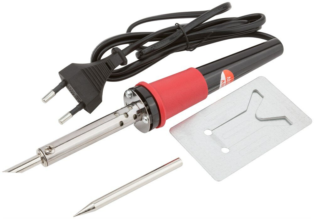 КУРС Паяльник 220 В, пластиковая ручка, доп-но подставка для паяльника и два сменных жала, D=3,5 мм, 30 Вт