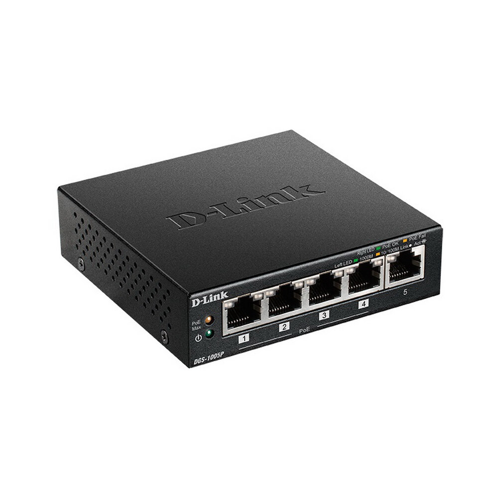 D-Link коммутатор неуправляемый, кол-во портов 5x1000 Мбит/сек (DGS-1005P/A1A), черный информация:
