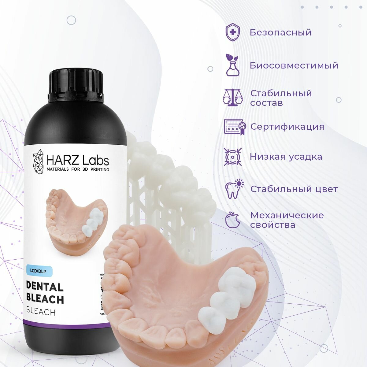 Стоматологическая фотополимерная смола для 3D-печати HARZ LABS Dental Bleach для LCD/DLP 3D принтеров 365-405 нм (1 кг) 15 400 ₽