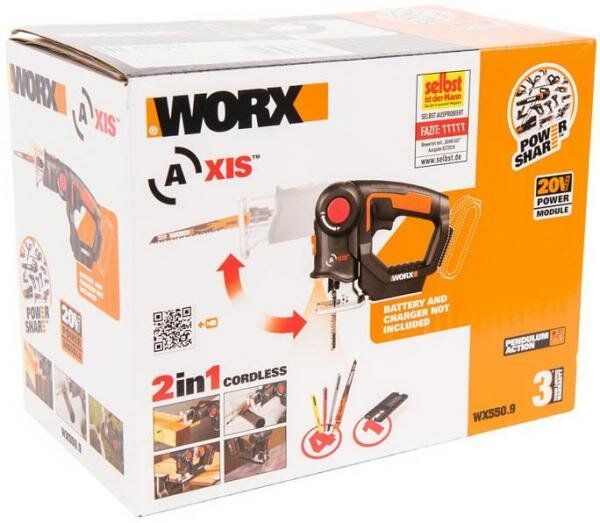 Аккумуляторный лобзик/сабельная пила WORX Axis информация: