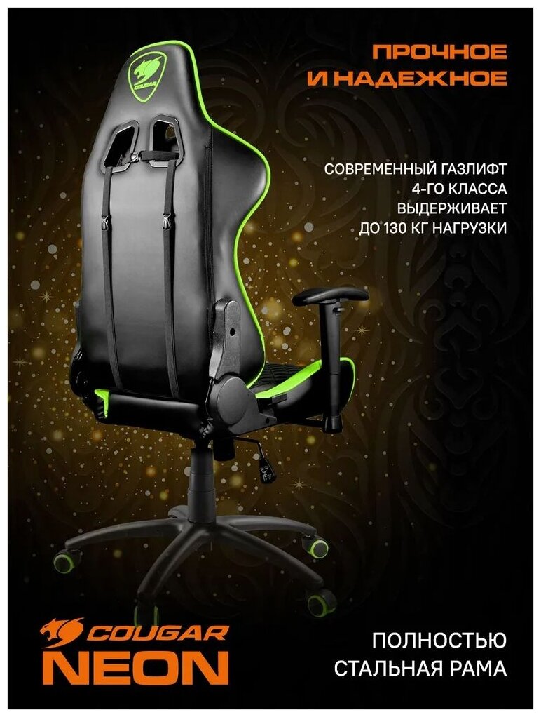 Отзывы на Компьютерное кресло COUGAR NEON игровое, обивка: искусственная кожа, цвет: черно-зеленый