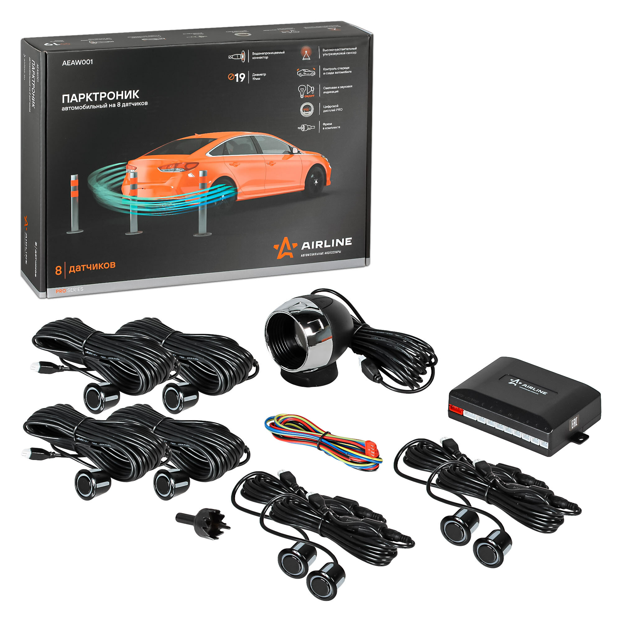 airline aeaw001 Парктроник на 8 датчиков (черные), led дисплей pro (aeaw001)
