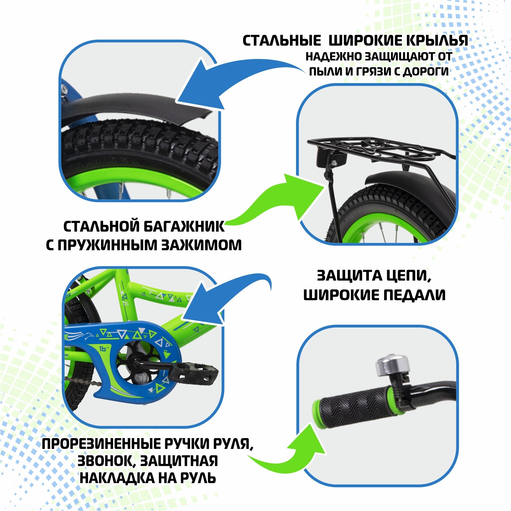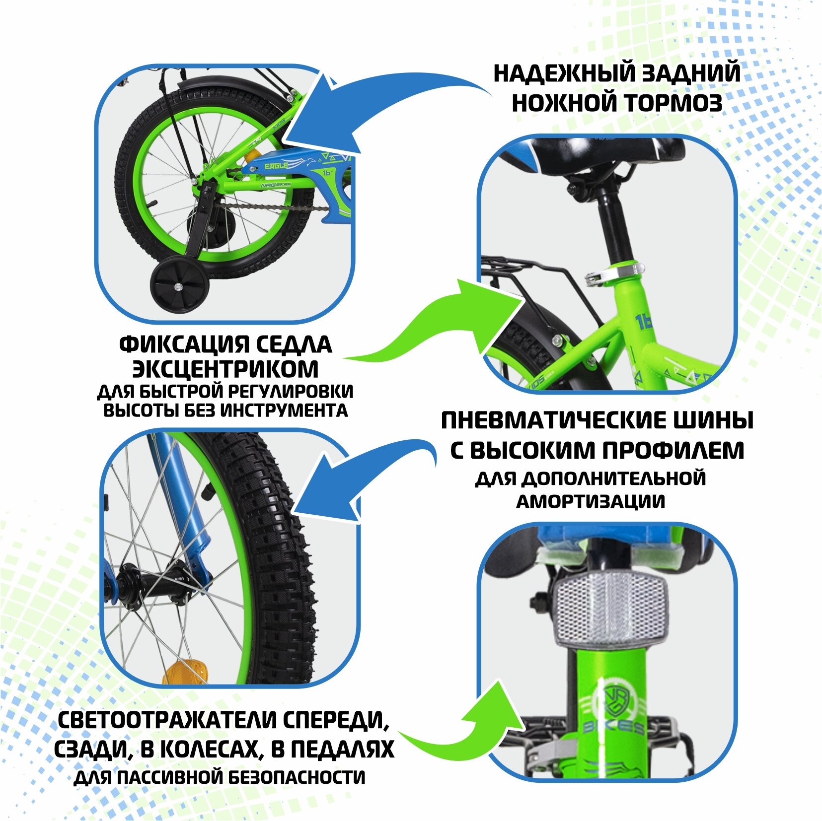 Велосипед детский NRG Bikes EAGLE 16", зелено-синий, 5-8 лет информация: