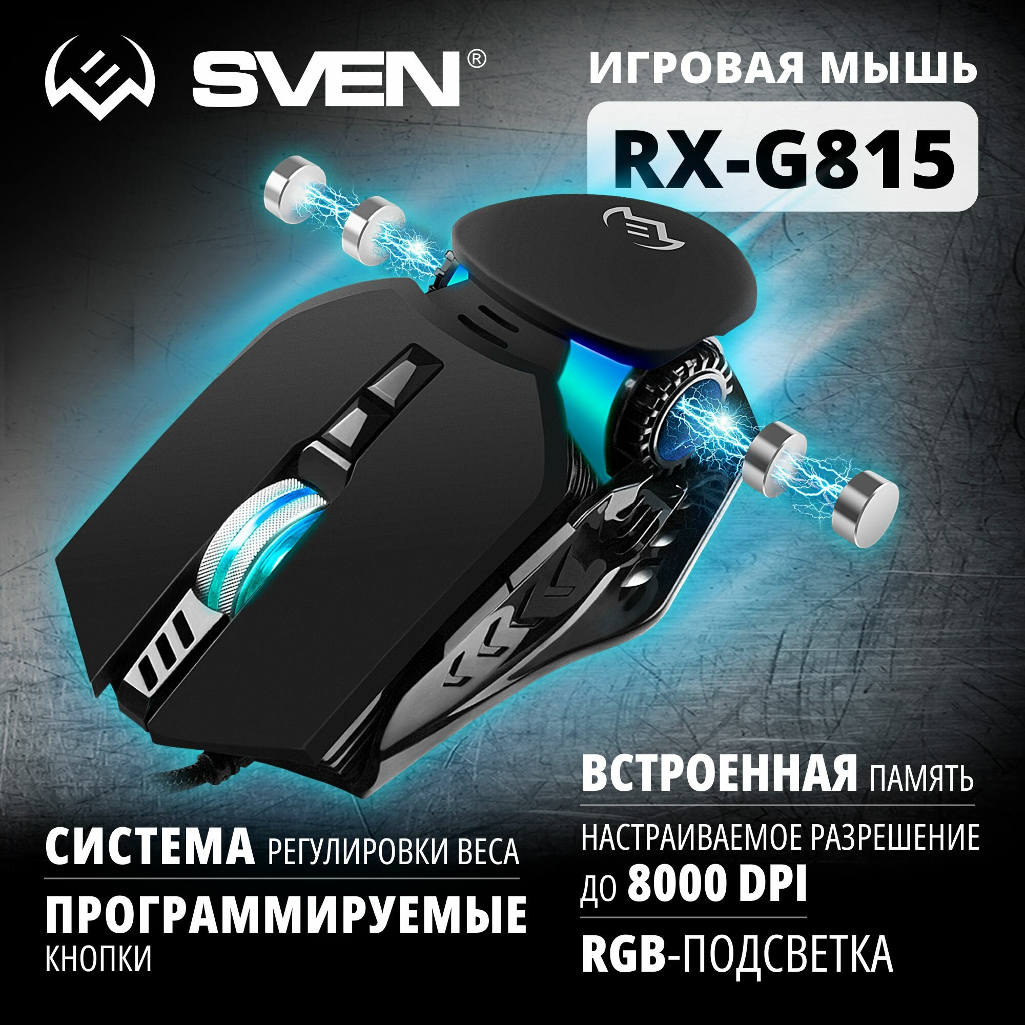 SVEN RX-G815 Игровая мышь (6+1кл. 500-8000 DPI, ПО, SoftTouch, RGB-подсветка, игров. упак)