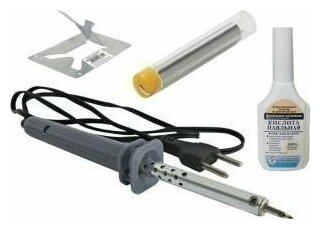 10 цен на PL4300, Набор для пайки (Паяльник 40вт "конус", подставка, флюс 20мл., припой ПОС40 с канифолью)
