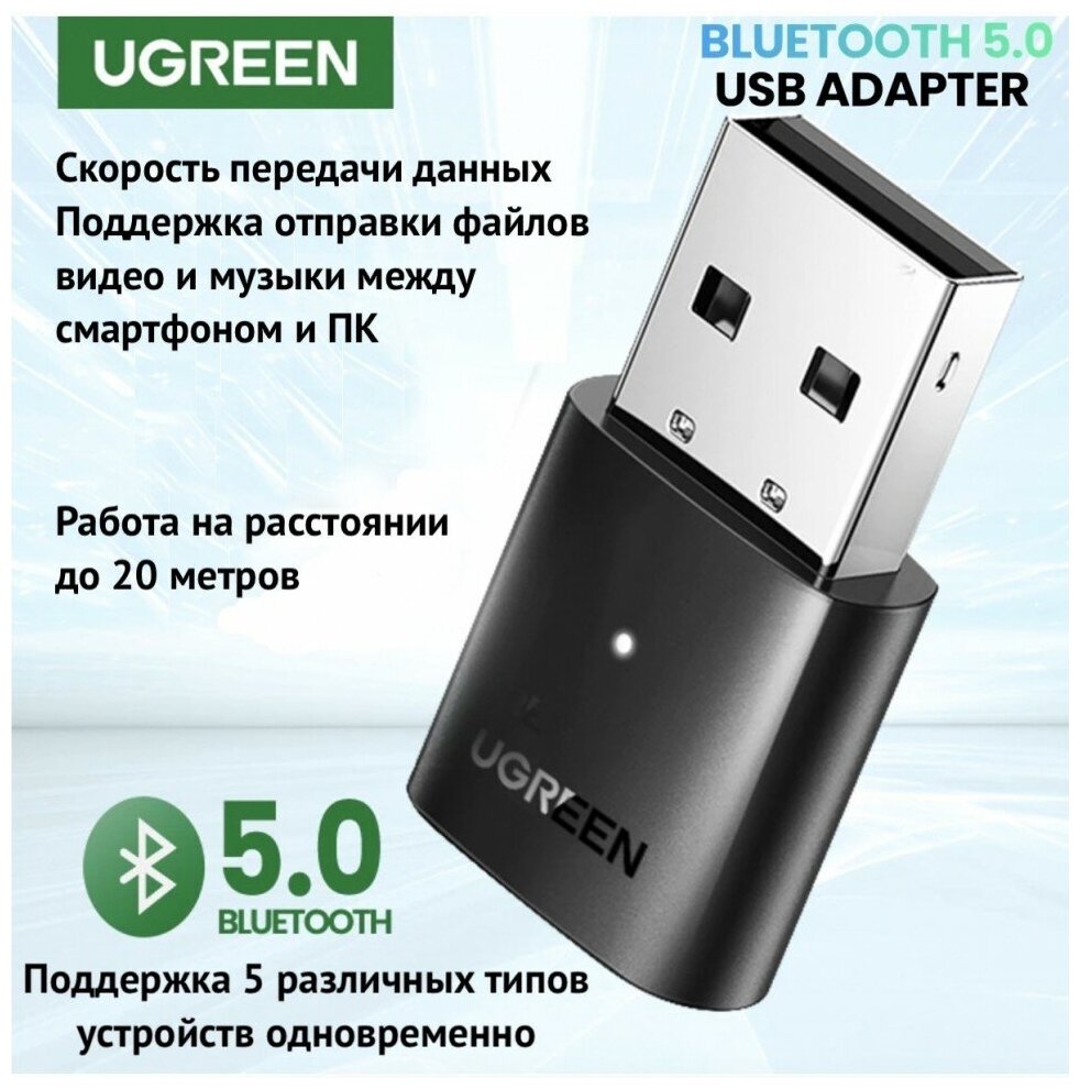 Bluetooth 5.3 адаптер для компьютера, наушников / UGreen USB Bluetooth Adapter 5.3