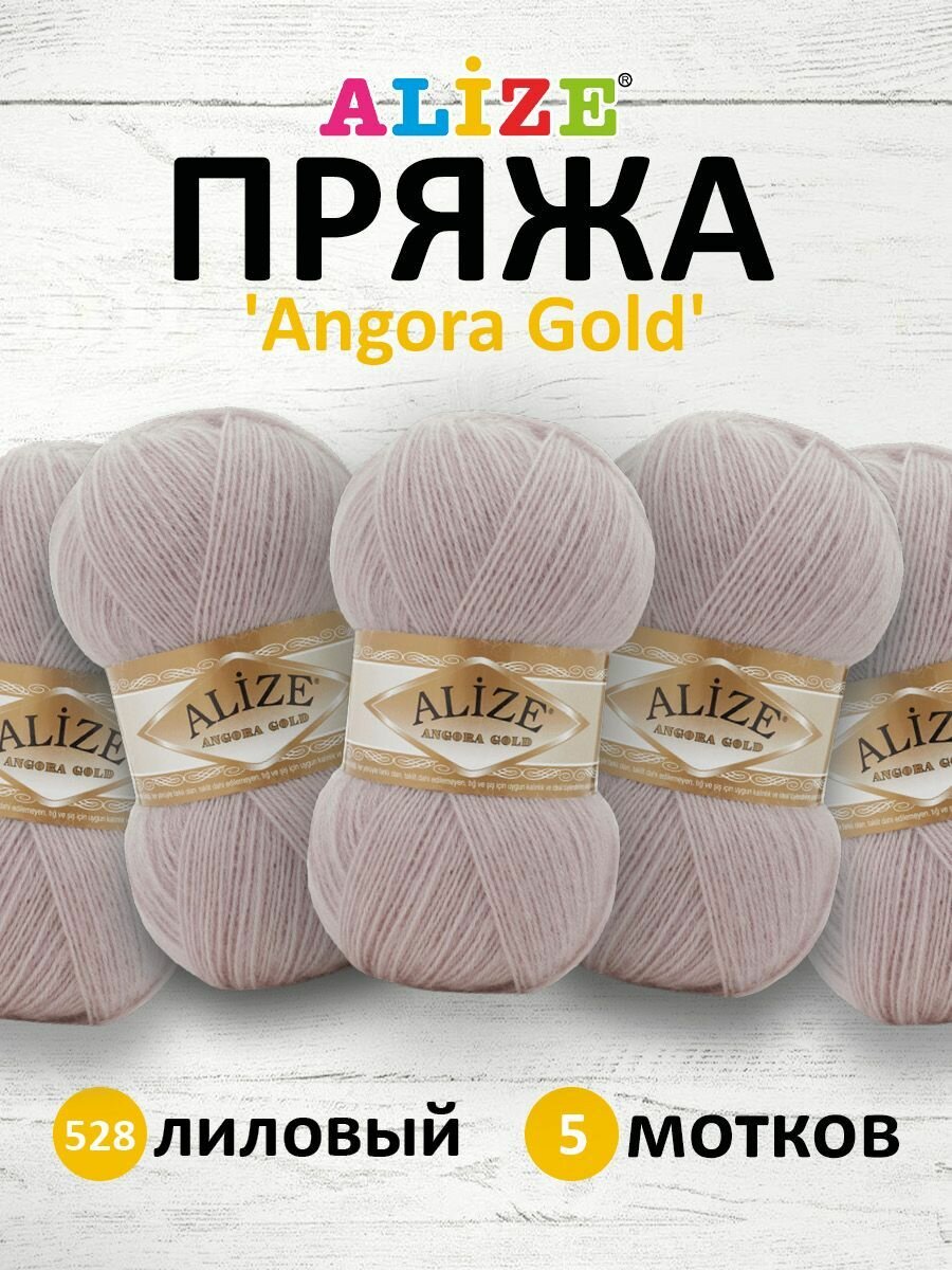 10 цен на Пряжа для вязания ALIZE 'Angora Gold', 100г, 550м (80% акрил, 20% шерсть), ТУ (528 лиловый), 5 мотков