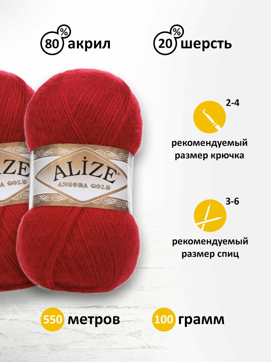 10 цен на Пряжа для вязания ALIZE 'Angora Gold', 100г, 550м (80% акрил, 20% шерсть), ТУ (106 красный), 5 мотков