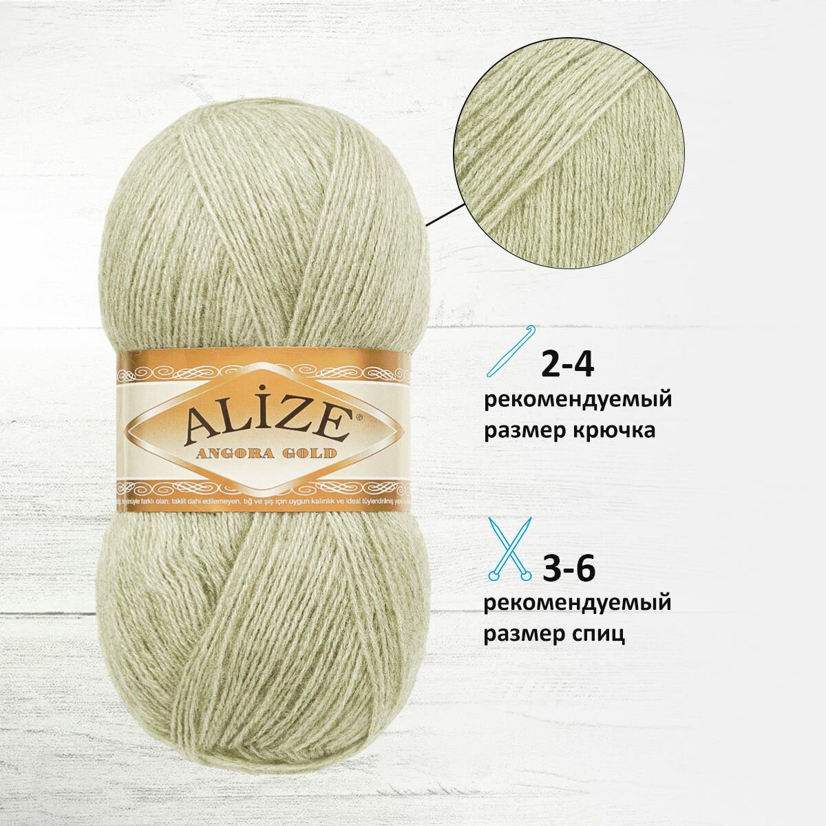 Пряжа для вязания ALIZE 'Angora Gold', 100г, 550м (80% акрил, 20% шерсть), ТУ (881 светло-бледно-зеленый), 5 мотков информация: