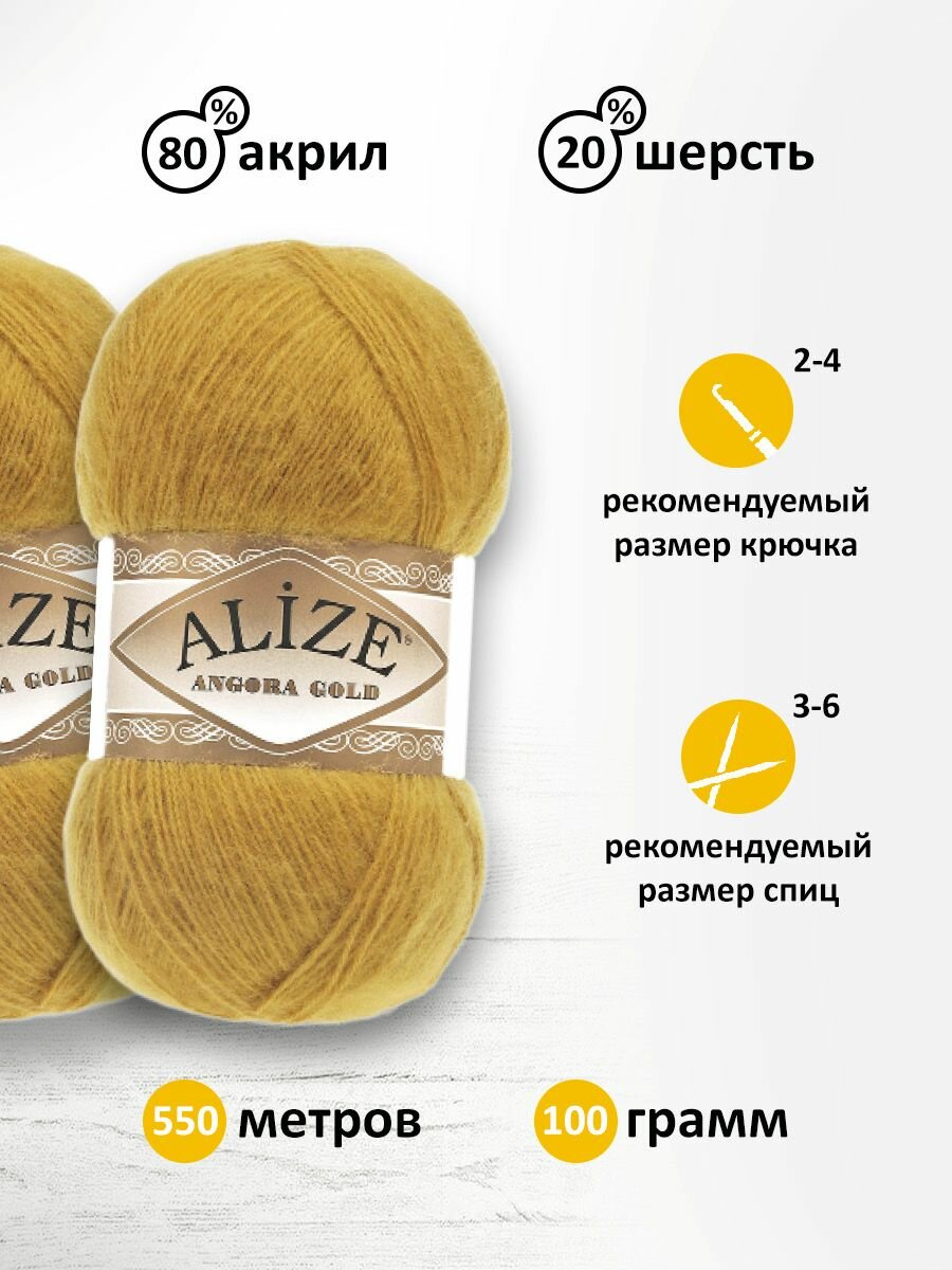 Пряжа для вязания ALIZE 'Angora Gold', 100г, 550м (80% акрил, 20% шерсть), ТУ (02 шафран), 5 мотков информация: