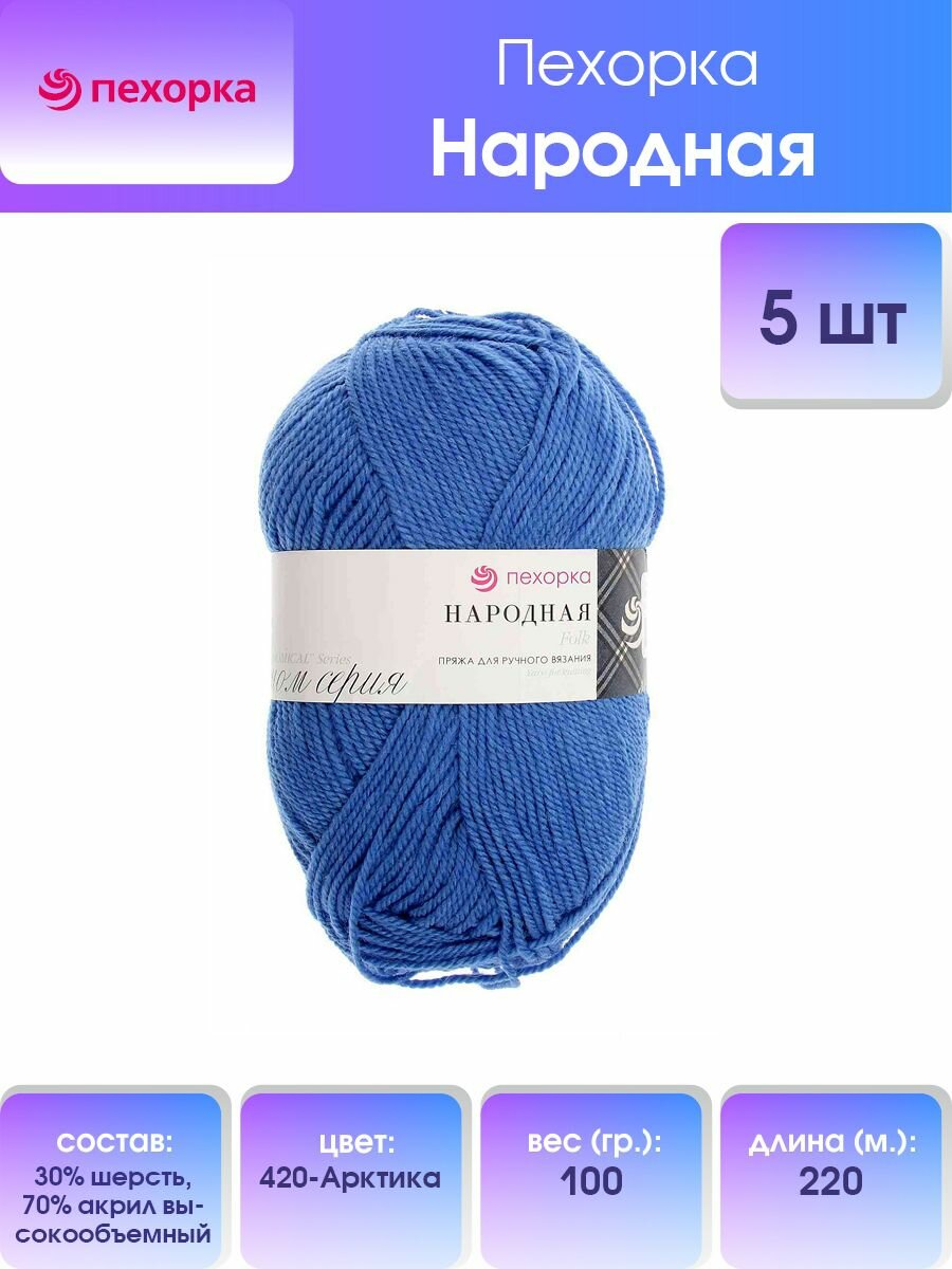 Пряжа Пехорка Народная арктика (420), 70%акрил/30%шерсть, 220м, 100г, 5шт информация: