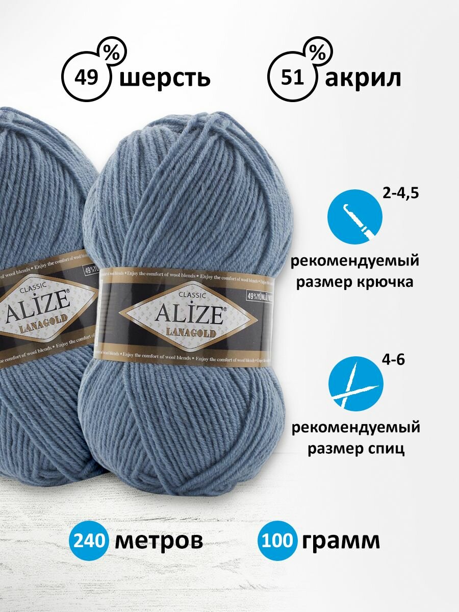 Пряжа для вязания ALIZE 'Lanagold', 100г, 240м (49% шерсть, 51% акрил) (498 серо-синий), 5 мотков информация: