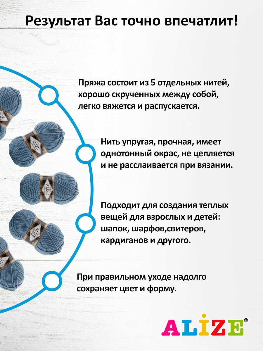 Отзывы на Пряжа для вязания ALIZE 'Lanagold', 100г, 240м (49% шерсть, 51% акрил) (498 серо-синий), 5 мотков