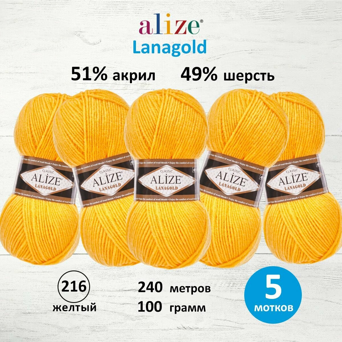 Пряжа Ализе Ланаголд 216 желтый 5 мотков/100г/240м