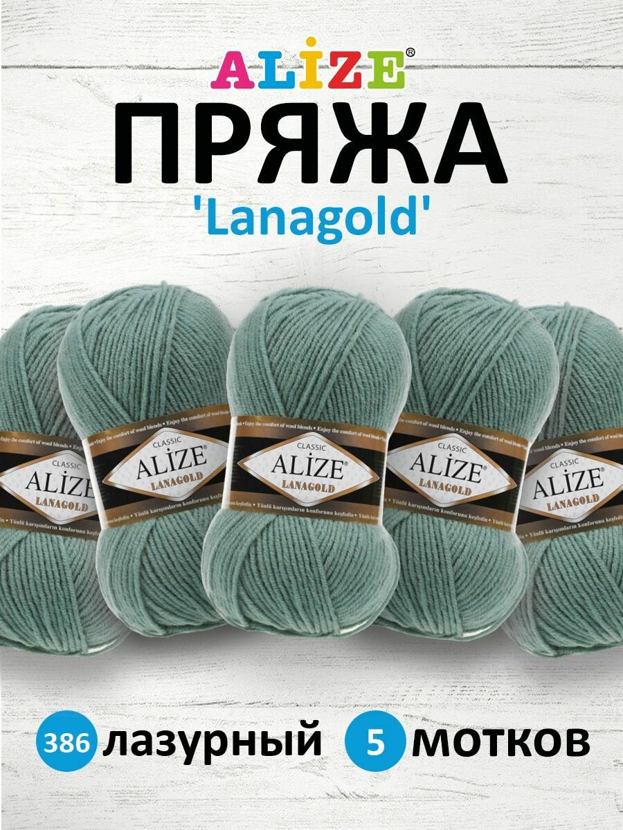 Пряжа для вязания ALIZE 'Lanagold', 100г, 240м (49% шерсть, 51% акрил) (386 лазурный), 5 мотков информация: