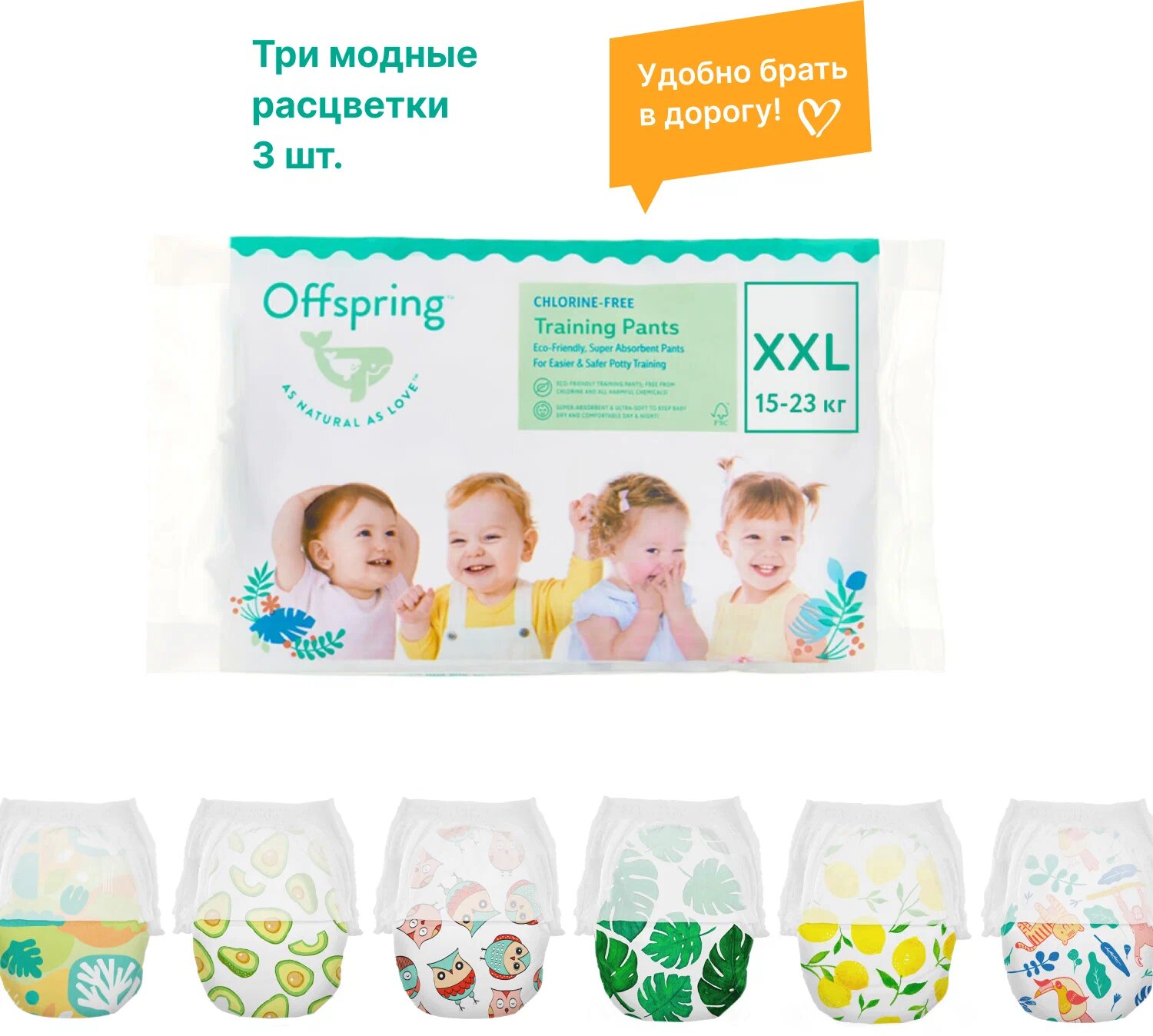 Трусики-подгузники Offspring, Travel pack, XXL 15-23 кг. 3 шт. 3 расцветки 239 ₽