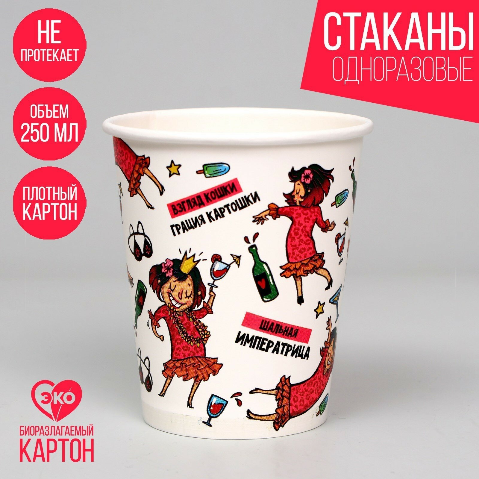 Стакан одноразовый бумажный "Вечериночка", 250 мл, однослойный, 10 шт. информация: