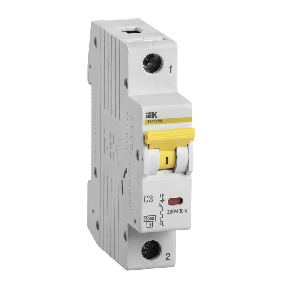 Автоматический выключатель Iek ВА47-60M 1P C3 А 6 кА MVA31-1-003-C информация: