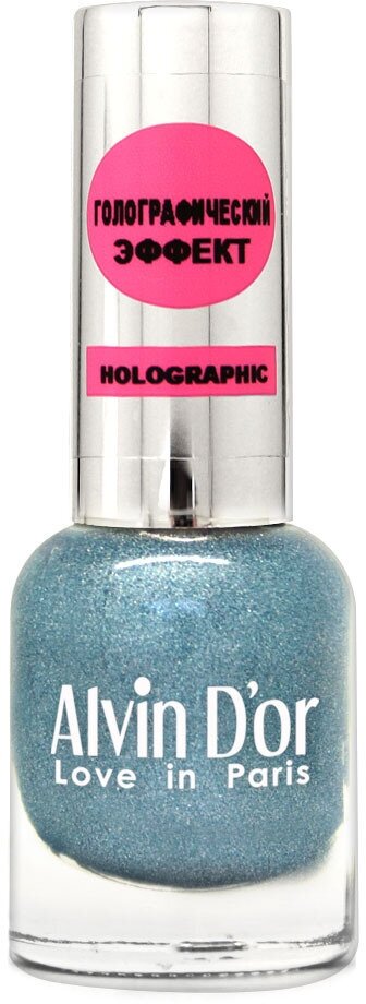 Alvin D'or / Алвин Дор Лак для ногтей Holographic 710 голубой в стеклянном тюбике 12мл / покрытие для маникюра и педикюра
