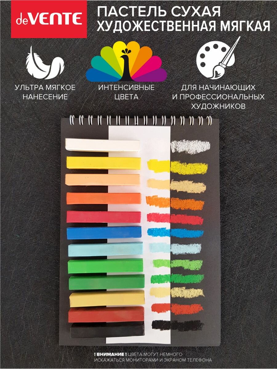 Пастель сухая художественная мягкая deVENTE, квадратное сечение 65x10 мм, 12 цветов информация: