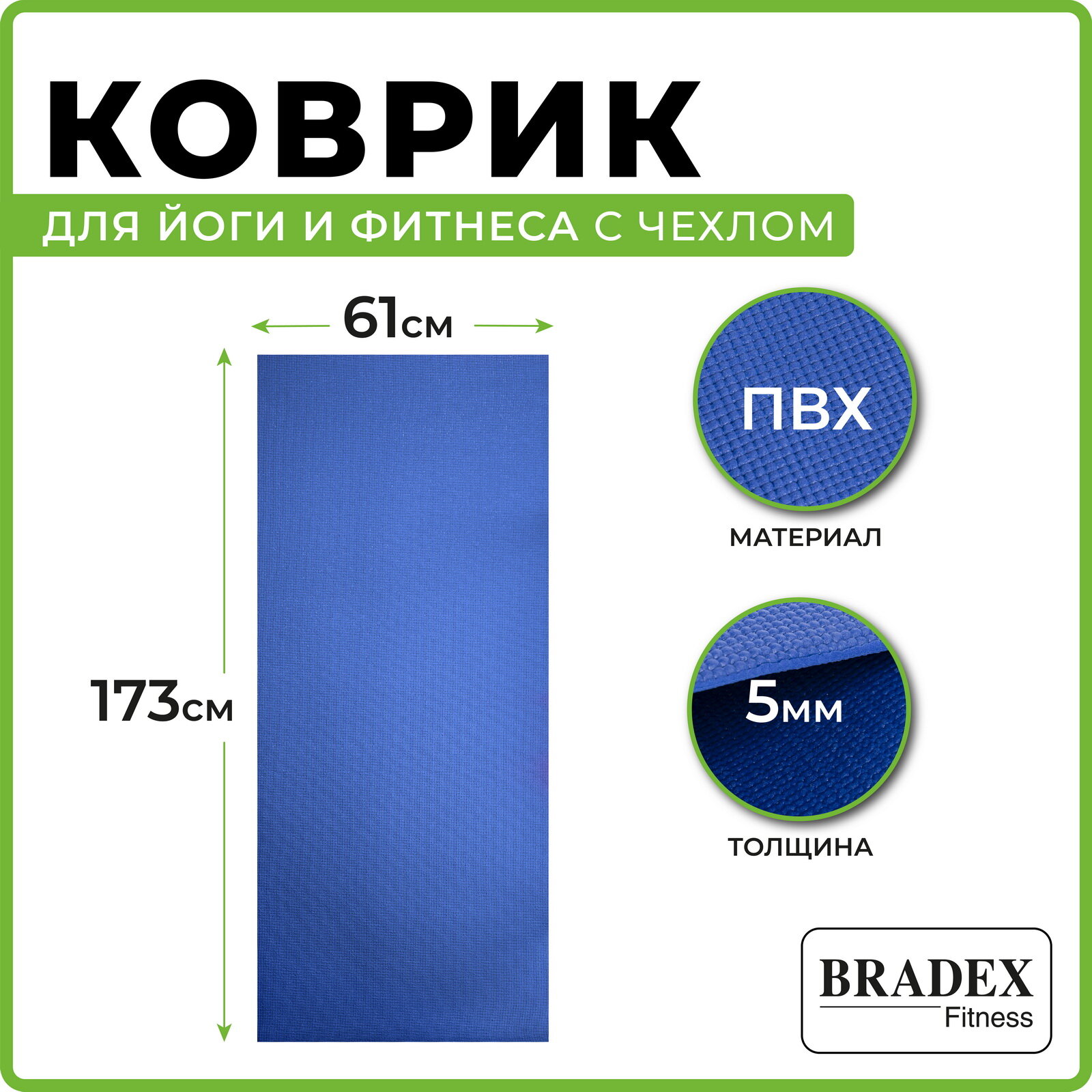 Коврик для йоги и фитнеса Bradex 173x61x0,5 см информация: