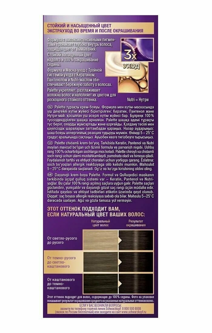 Palette Стойкая крем-краска для волос N3 (4-0) Каштановый, 110 мл, 3 штуки информация: