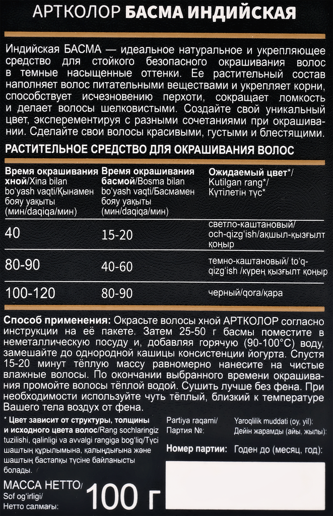 Басма артколор Индийская, высший сорт, 100г информация: