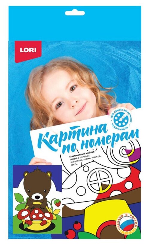 Отзывы на Картина по номерам LORI для малышей, Мишка с грибами, 20х28,5 см, в коробке (Ркн-050)