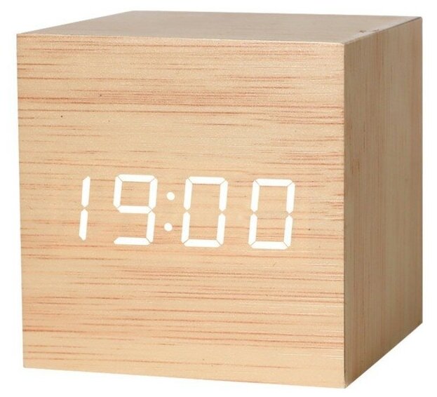 10 цен на Часы - будильник электронные "Цифра" настольные с термометром, деревянные, 6.5 см, ААА, USB