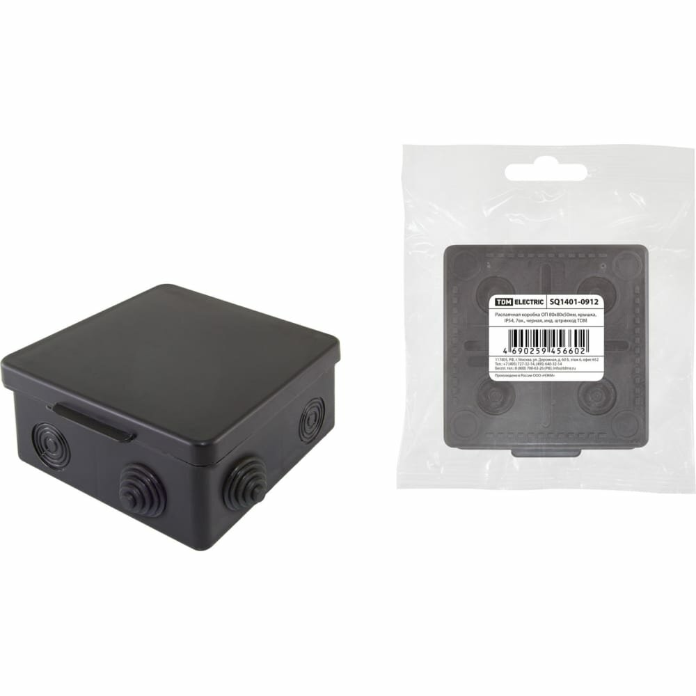 Коробка распаячная ОП 80х80х50 IP54, 7 входов, черная, индивидуальный штрихкод TDM