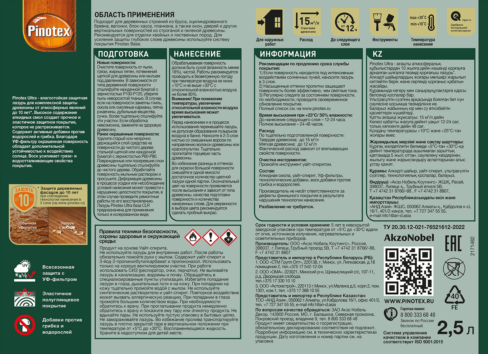 PINOTEX ULTRA лазурь защитная влагостойкая для защиты древесины до 10 лет сосна (2,5л) new информация: