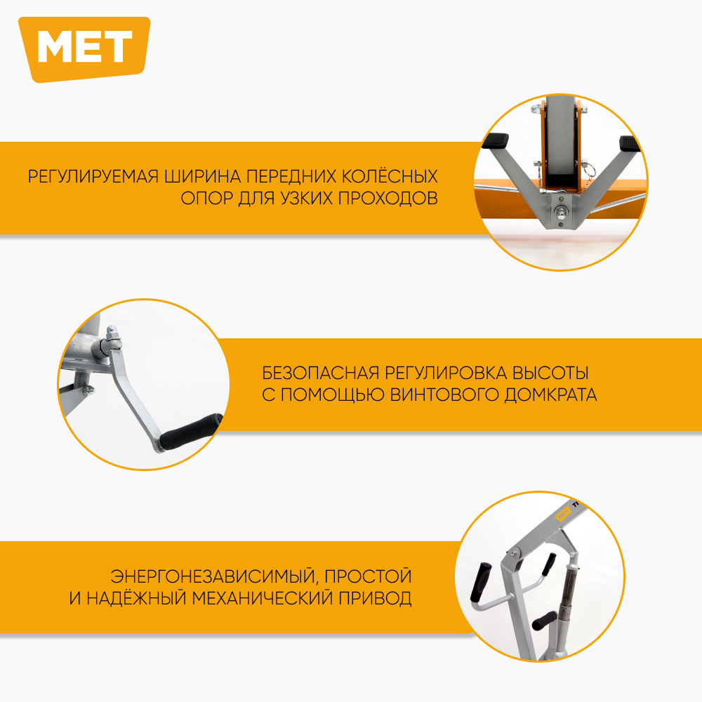 МЕТ Подъёмник MET TITAN 9-150 узкий с винтовым приводом до 150 кг (15335)