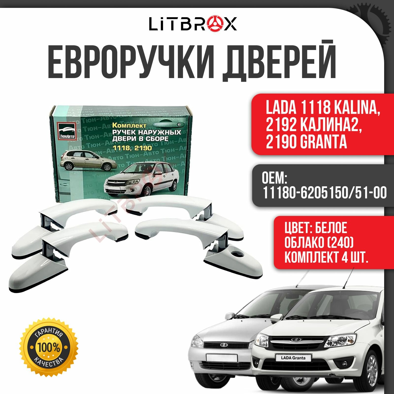 10 цен на Евроручки дверей "Тюн-Авто" Белое облако(240) / (к-т. 4 шт.) ВАЗ LADA 1118 Kalina, 2192 Калина2, 2190 Granta/Гранта 11180-6205150/51-00