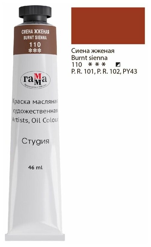Краска масляная художественная Гамма "Студия", туба 46мл, сиена жженая (0.00.А046.110), 3шт. 732 ₽