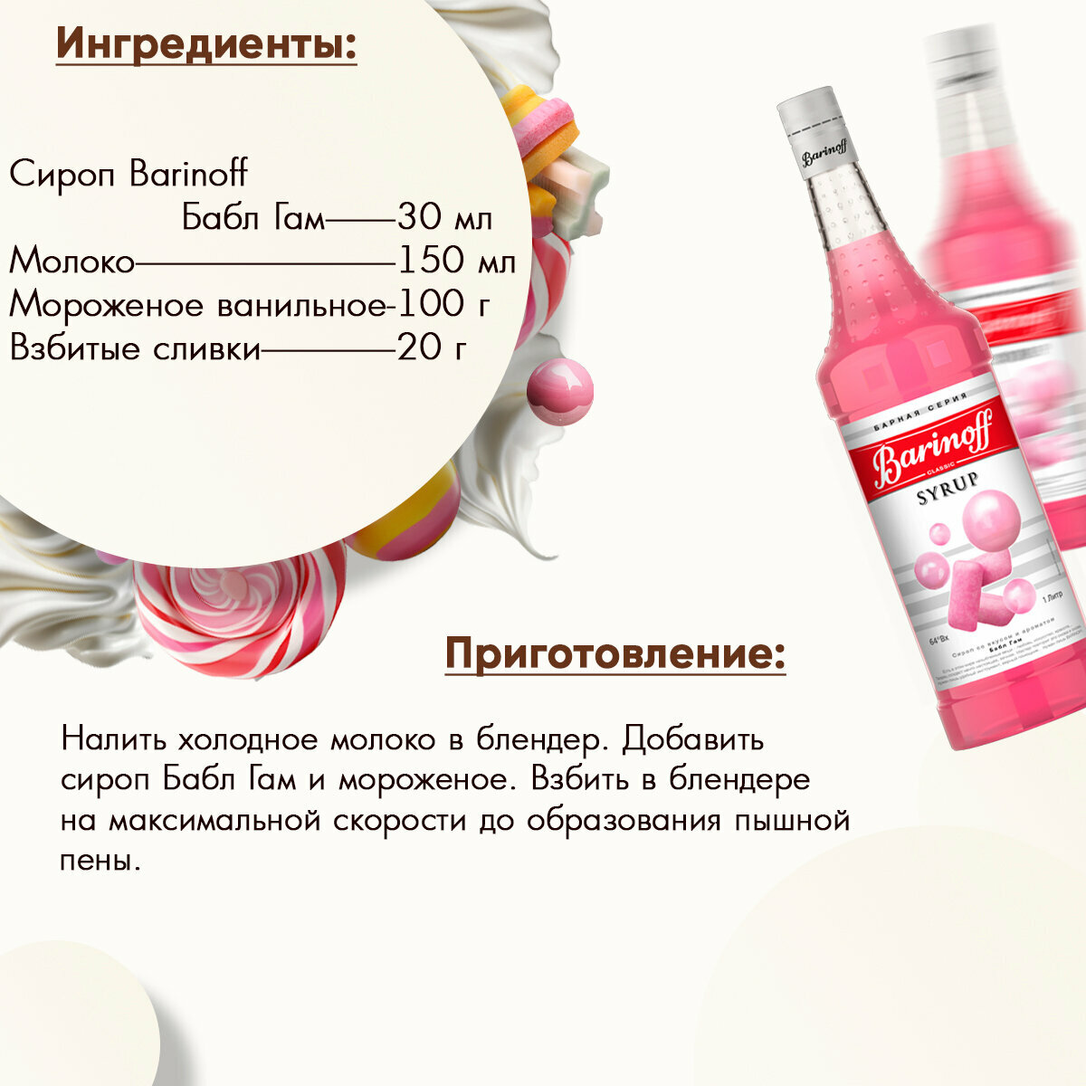 Сироп Barinoff Бабл Гам (для кофе, коктейлей, десертов, лимонада и мороженого), 1л информация: