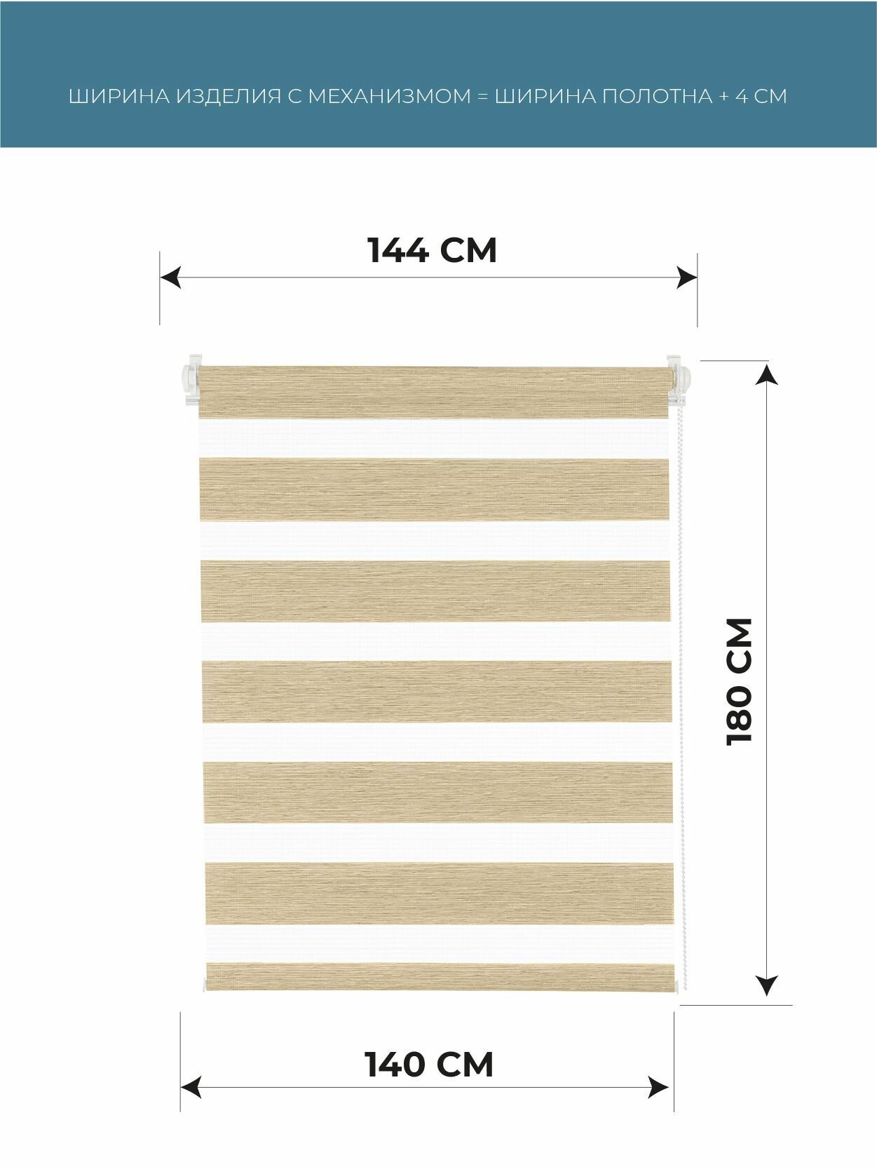 Рулонные шторы день ночь Жаккард Бежевый DECOFEST 140 см на 180 см, жалюзи на окна информация: