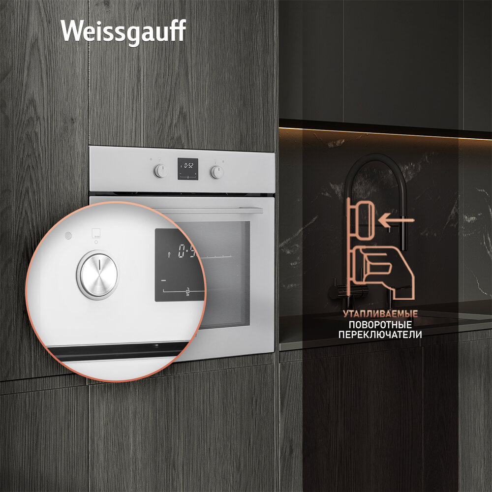 Электрический духовой шкаф Weissgauff EOV 661 PDX / EOV 661 PDB, черно-серебристый