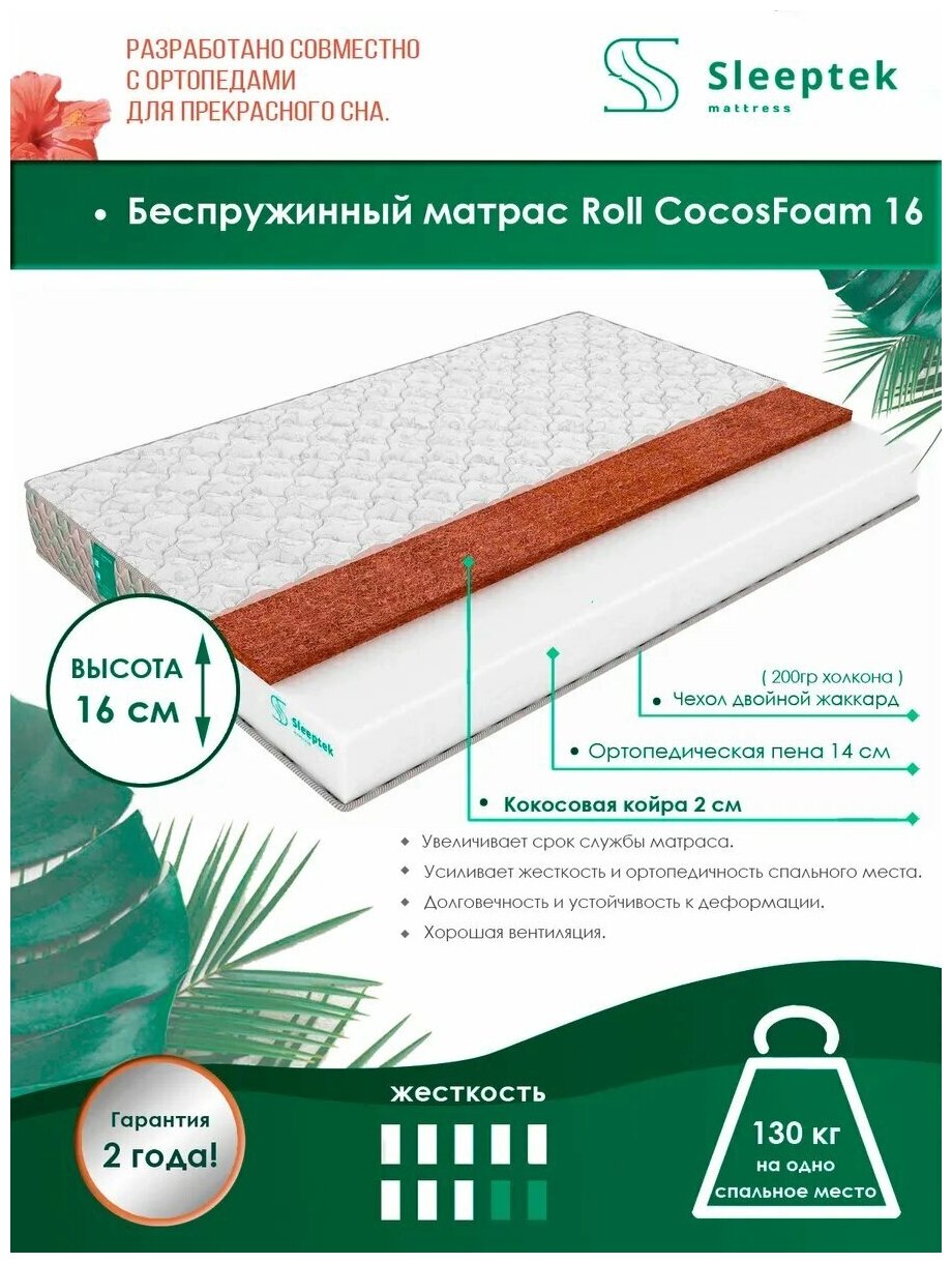 Матрас Sleeptek Roll CocosFoam 16 120х200 18 240 ₽