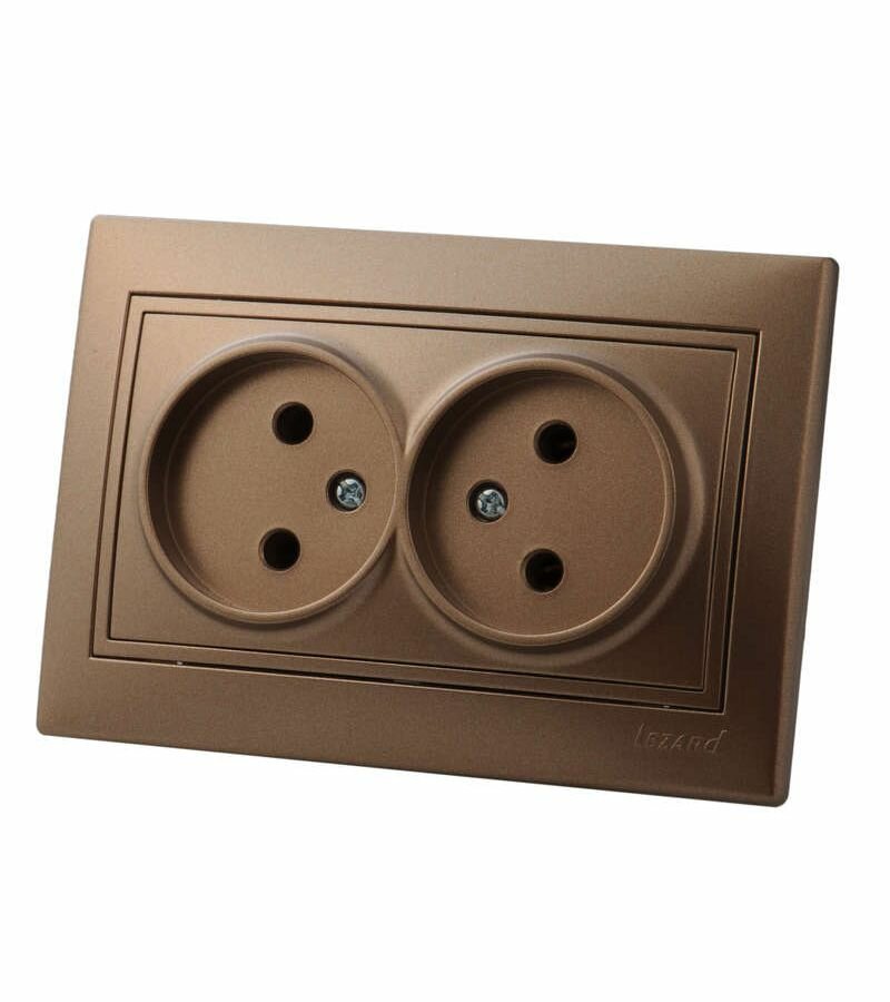701-3131-128 Розетка 2-м СП Mira 16А IP20 без заземл. со вставкой керамика свет. корич. перламутр. LEZARD