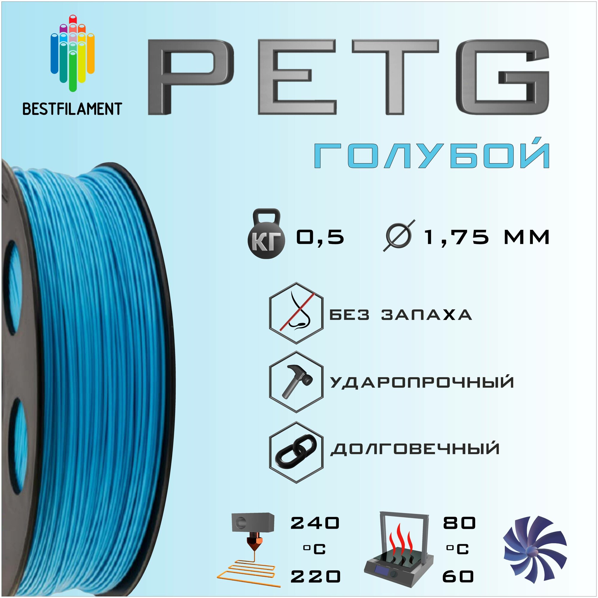 PETG Голубой 500 гр. 1.75 мм пластик Bestfilament для 3D-принтера информация: