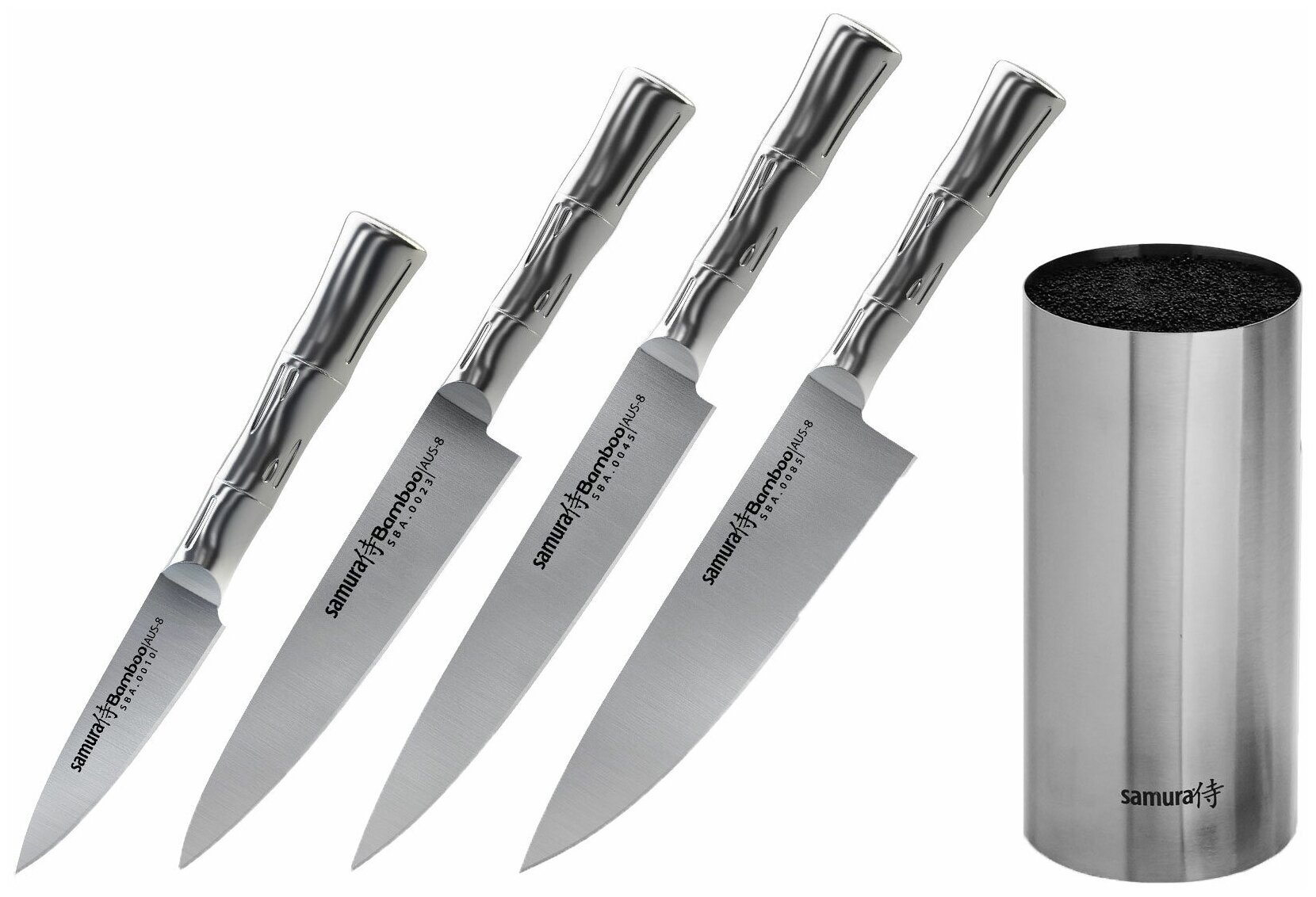 Набор Samura Bamboo 4 ножа с подставкой серебристый