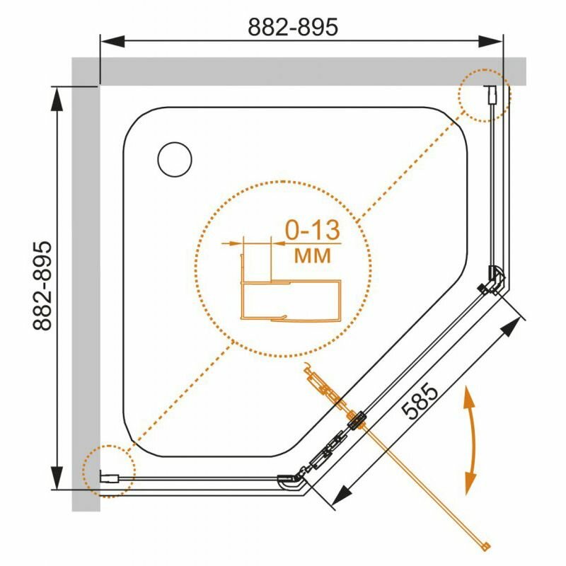 Душевое ограждение уголок SANTREK Iris-CR-900-C-Chrome 900*900*1850 Г-обр. стекло Прозр 6мм, профиль Хром