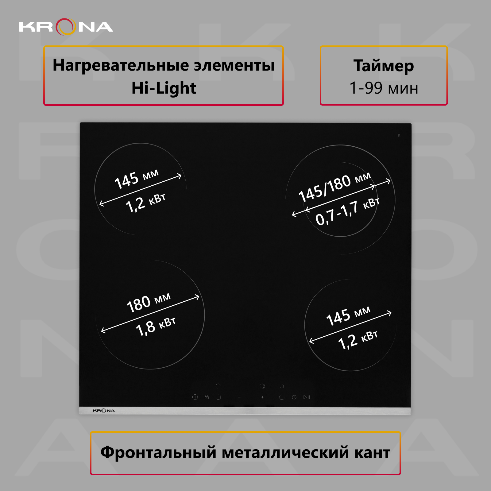 Встраиваемая электрическая варочная панель Krona CELLO 60 BL/S информация:
