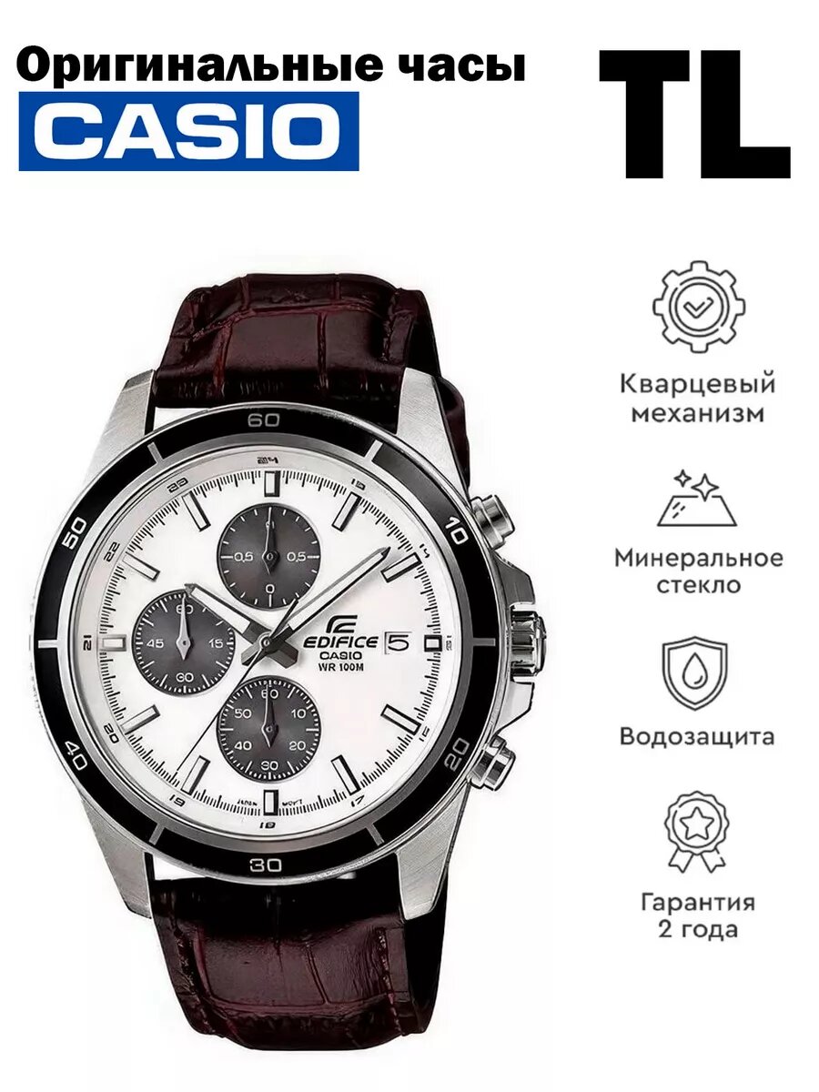 Японские кварцевые часы Casio Edifice EFR-526L-2A на кожанном браслете, с водозащитой 10 бар и международной гарантией от производителя 15 890 ₽