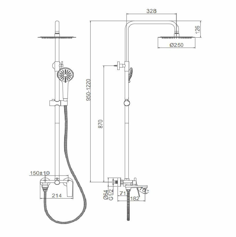 Душевая стойка OASIS с тропическим душем с смесителем и лейкой SUS2014МSt_Cha.