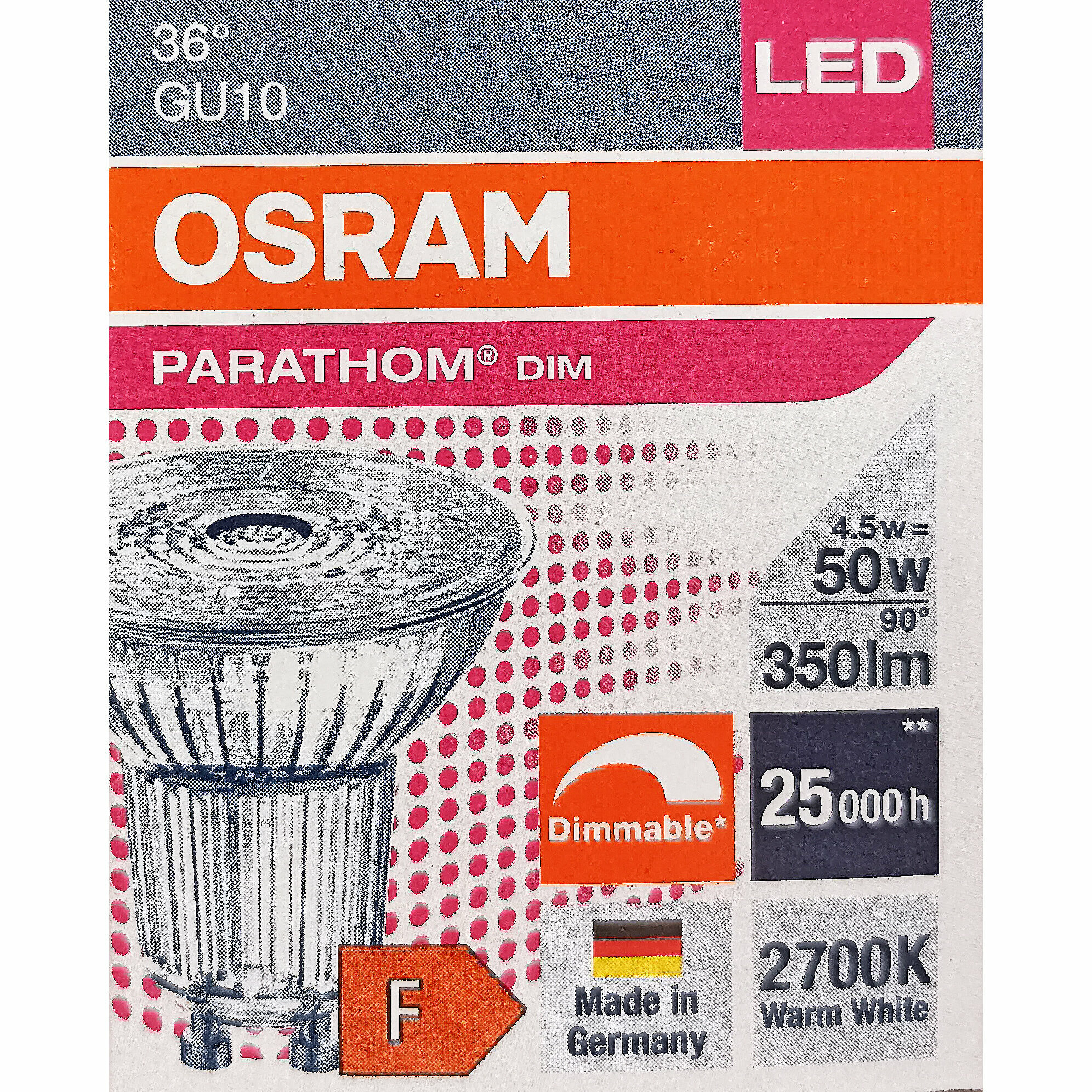Отзывы на Лампа Светодиодная Софит 4.5W 220-240V GU10 PAR16 350Лм 2700К Угол 36 град. D-51mm L-54mm Диммируемая Свет Теплый белый OSRAM, уп. 5шт