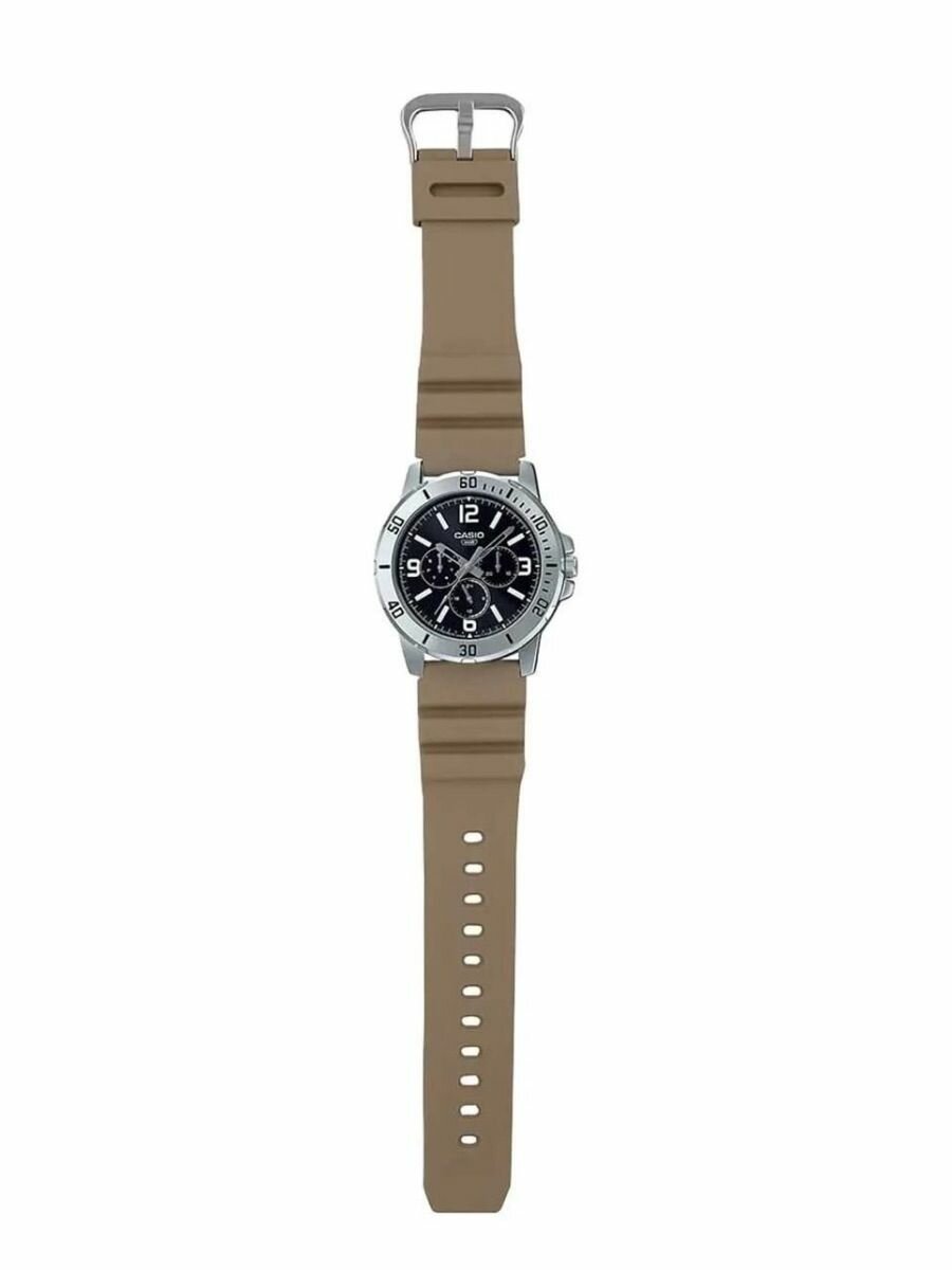 MTP-VD300-3B Casio наручные часы кварцевые WR30 (3 атм) мужские хром, хаки отображение числа, отображение дня недели подсветка стрелок минеральное стекло 6 674 ₽