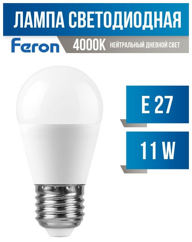 Feron шар G45 E27 11W(935lm) 4000K 4K матовая 90x45, LB-750 25950 (арт. 694370) информация: